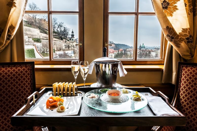 Discover the beauties of Prague with our exclusive package incl. 3hrs city tour, daily breakfast and 3 course dinner for two at award winning Terasa U Zlaté studně Restaurant !